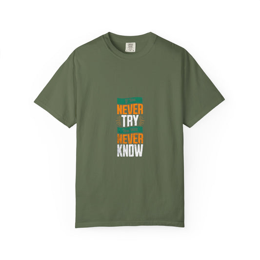 T-Shirt — Vintage-Inspired 'Never' Graphic Tee (Green & Orange)