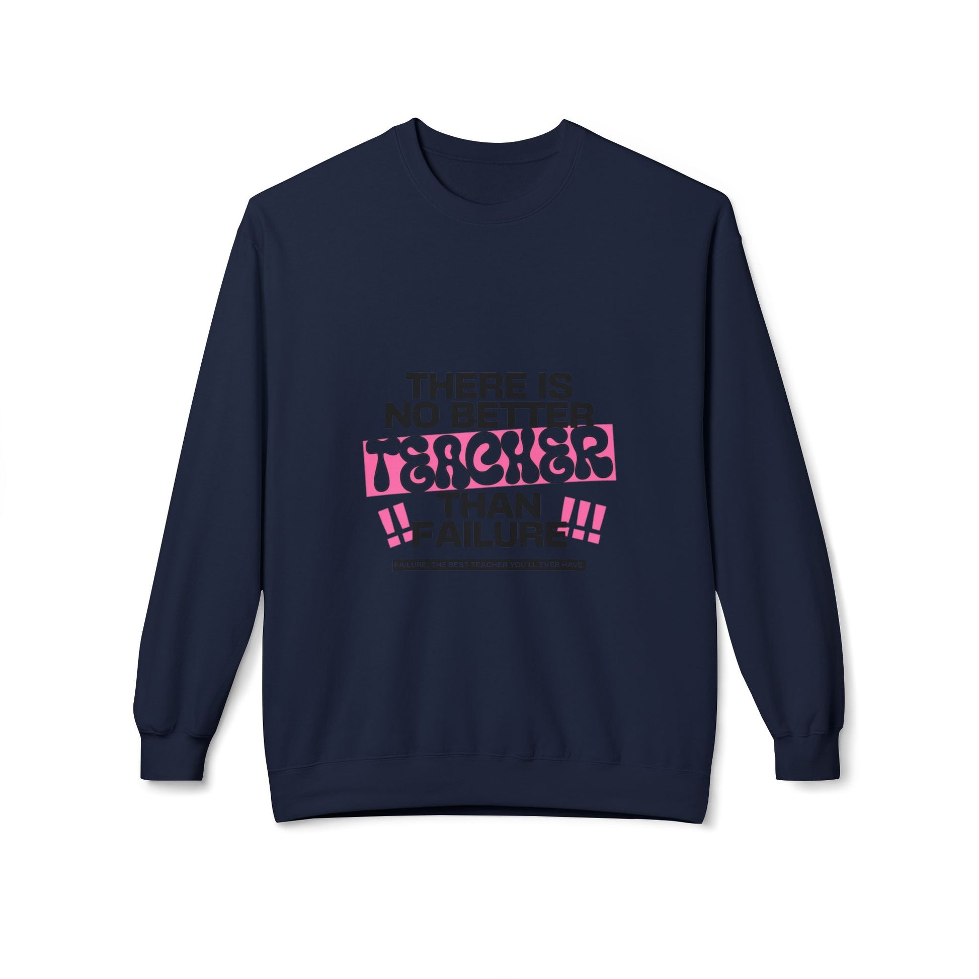Introducing our cozy Midweight Softstyle Fleece Crewneck Sweatshirt—your new favorite layering piece! This sweatshirt radiates a warm, casual vibe, perfect for those chilly days at home or out with friends. Its relaxed fit with dropped shoulders ensures you'll move comfortably while looking effortlessly stylish. Ideal for teachers, students, and anyone who appreciates motivational quotes, this sweatshirt makes a thoughtful gift for Teacher's Day, birthdays, or just to show support to a friend facing challenges. Embrace the message that "There is no better teacher than failure" and inspire yourself or others to embrace growth and learning!